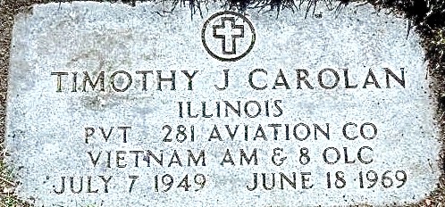 Timothy Carolan's service as an intruder door gunner was excellent. At the time of his death he was being considered for promotion to a Crew Chief position. Tim shall always be remembered by his fellow Intruders.