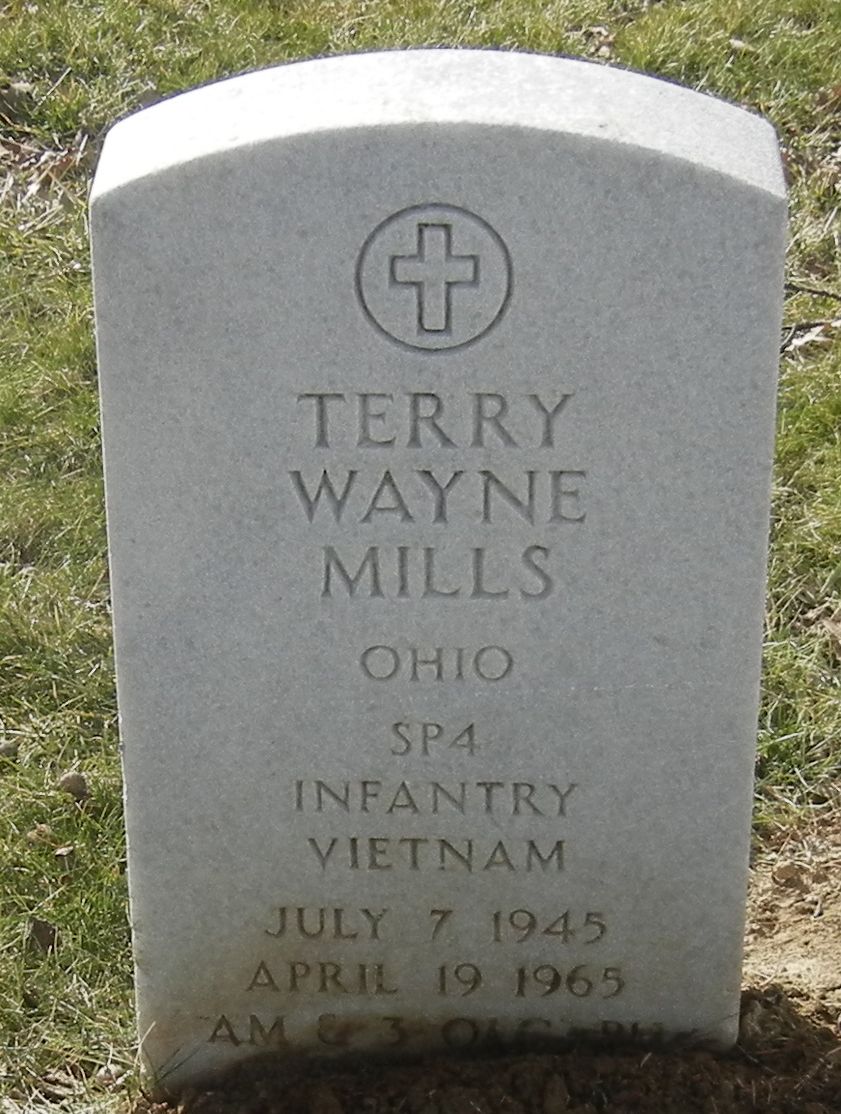 SP4 Terry Mills was onboard UH-1B Gunship 63-08632, (Miss Oklahoma), when hostile NVA force engaged it. The aircraft was struck by ground fire. WO Daniel Bishop and 1LT Joseph Thorne, pilots, SP5 Millay, and SP4 Olivar, the crew chief, were also killed in the crash. The crew was providing close air gun ship support for a combat assault mission north of Qui Nhon at LZ Alpha. (See